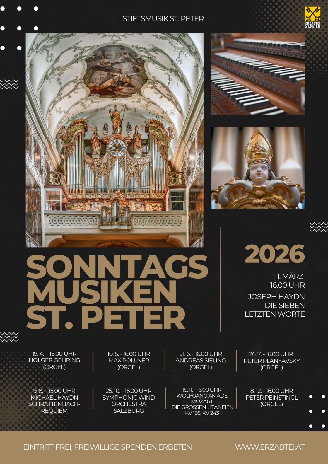 Wir laden Sie zu einer besonderen Reihe von Orgelkonzerten in die Stiftskirche St. Peter ein. Im Mittelpunkt stehen die drei bedeutenden Orgeln der Kirche, die in ihrer klanglichen Vielfalt und in der besonderen Akustik des Kirchenraums zu erleben sind.
